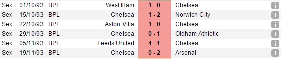 Há apenas três momentos, na história da Premier League, que foram piores que o atual do Chelsea: quatro derrotas seguidas em 1997 e 1998, e seis em 1993.