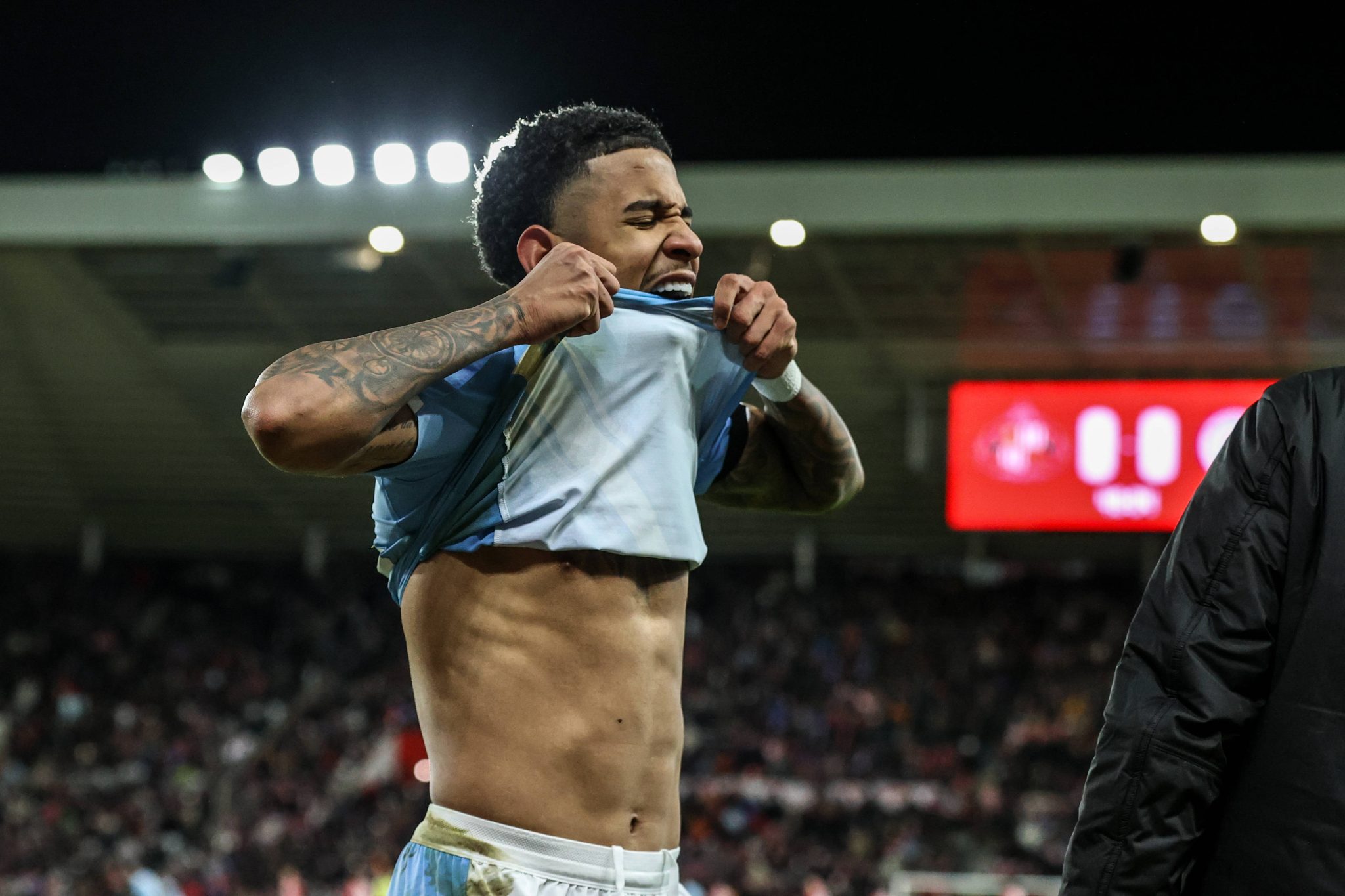 Savinho chegou com duas chances claras logo no início, mas parou no goleiro do Sunderland. Logo depois, também lesionado, precisou ser substituído por Jérémy Doku, mudança que acabou com o raro momento de controle no City na partida.