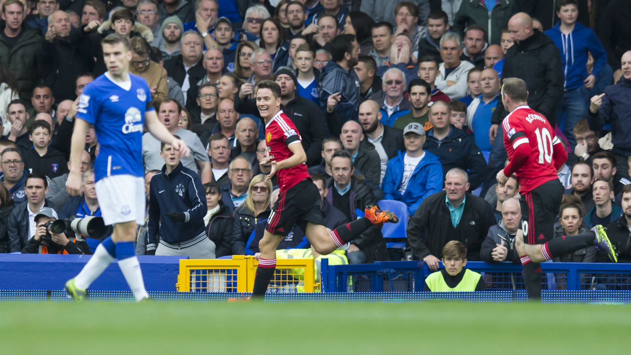Depois, o deslize do Everton foi ainda maior. Primeiro ao deixar Rojo subir sozinho pela esquerda. O argentino teve liberdade para pegar na bola como quis e acertar um cruzamento preciso para Ander Herrera. O espanhol, apesar de não ser alto, cabeceou com facilidade para fazer 2 a 0 aos 22 minutos. Apareceu entre dois marcadores do Everton, completamente sem marcação, e tirou a bola do alcance de Howard.