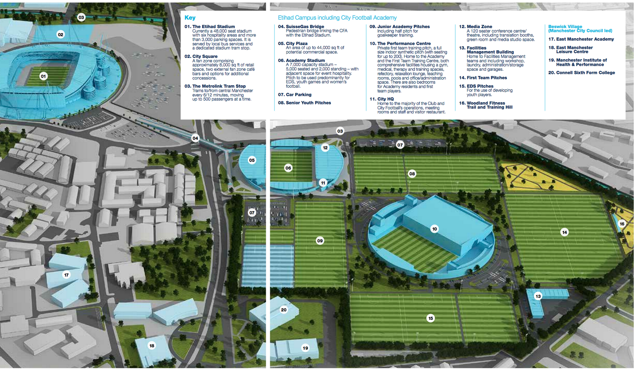 Depois de seis anos de construção, o Manchester City inaugurou o seu moderno centro de treinamentos. O complexo ao lado do Estádio Etihad dará suporte a cerca de 450 jogadores, dos seis anos ao elenco profissional. São 16 campos de futebol, alojamentos, centros médicos, estádio com capacidade para 7 mil espectadores e as acomodações completas para aprimorar o trabalho dos Citizens. Tudo a um custo de € 240 milhões, o equivalente a quase “cinco Robinhos”, pelo qual o clube pagou € 46 milhões em 2008. Investimento sem o risco de causar uma frustração tão grande. E, mais importante, não entra na conta do Fair Play Financeiro, já que faz parte dos gastos em “infraestrutura, centros de treinamento e desenvolvimento de jogadores jovens”.