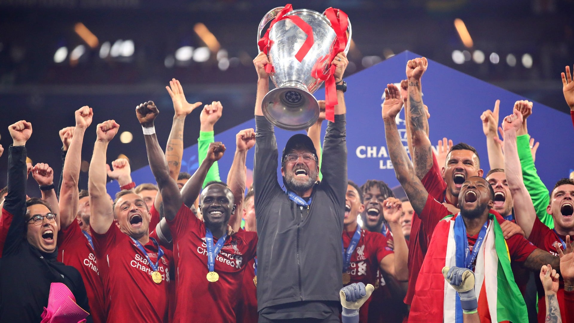 Talvez o que melhor ilustre a diferença de abordagem do Liverpool de uma final para a outra é que Klopp deu a preleção do jogo contra o Tottenham, em Madri, com uma cueca do Cristiano Ronaldo esticada até os mamilos. “É verdade. Alguns anos trás, comprando cuecas, eu peguei uma do Ronaldo. Eu ainda tenho, mas não uso desde a final. Foi engraçado. Eu parecia engraçado”, confirmou, ao Bild. Segundo Georginio Wijnaldum, o dedo-duro que denunciou Klopp ao The Athletic, foi a maneira que o treinador encontrou para quebrar o gelo e deixar os jogadores mais relaxados. Se na temporada anterior ninguém apostaria que o Liverpool chegaria à final, e o adversário era o então bicampeão, desta vez o feito parecia mais sólido. E contra um rival mais familiar como o Tottenham, o nervosismo seria naturalmente menor. Mané cavou um pênalti nos primeiros minutos. Salah converteu. Alisson fez algumas defesas importantes, e Origi selou o hexacampeonato europeu com um chute cruzado. O jogo foi ruim, mas Klopp estava cansado de finais emocionantes que ele acabava perdendo. “Não foi nosso melhor jogo, não foi o melhor jogo do Tottenham. Era uma final. Precisávamos aprender, como time, o que precisamos fazer para vencer esse tipo de jogo médio. Precisamos aceitar que, se não estivermos no nosso melhor, precisamos fazer outras coisas para vencer”, afirmou, alguns meses depois. Alívio foi o sentimento preponderante, depois de perder seis finais. No retorno a Liverpool, 750 mil pessoas abarrotaram as ruas da cidade com 491 mil habitantes – e 2,2 milhões na região metropolitana. O Liverpool estava no topo da Europa mais uma vez.