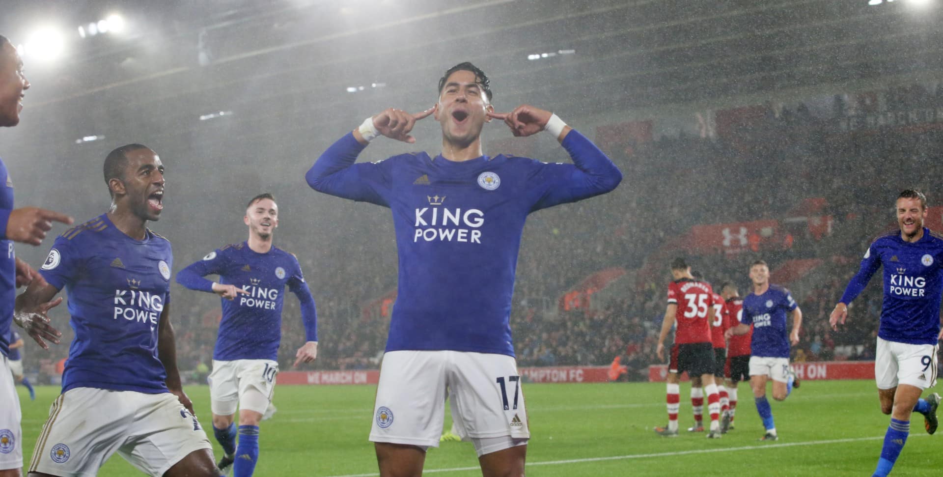 Há quem veja uma chuva forte como sinal premonitório. O aguaceiro incessante e também o vendaval que atingiram o Estádio St. Mary’s, no entanto, serviram como metáfora ao temporal de gols protagonizado pelo Leicester City nesta sexta: 9 a 0 sobre o Southampton. Nem as condições climáticas adversas foram capazes de atrapalhar as trocas de passes objetivas e impetuosas das Raposas, que igualaram a maior goleada da história da era Premier League. Desde que o Manchester United aplicou 9 a 0 sobre o Ipswich Town em Old Trafford, no dia 4 de março de 1995, um jogo da liga não via tamanha supremacia de uma equipe. Além disso, nunca, em 131 anos de Campeonato Inglês, um visitante havia vencido por nove ou mais gols de diferença. Os comandados de Brendan Rodgers foram impiedosos a este ponto, para assumir provisoriamente a vice-liderança da competição.