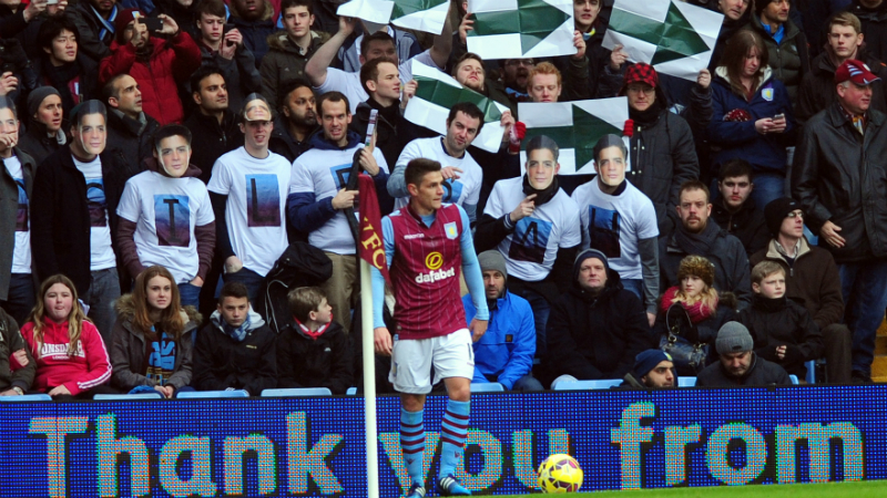 Seca de gols do Aston Villa já durava 11 horas, então a torcida resolveu dar uma ajudinha