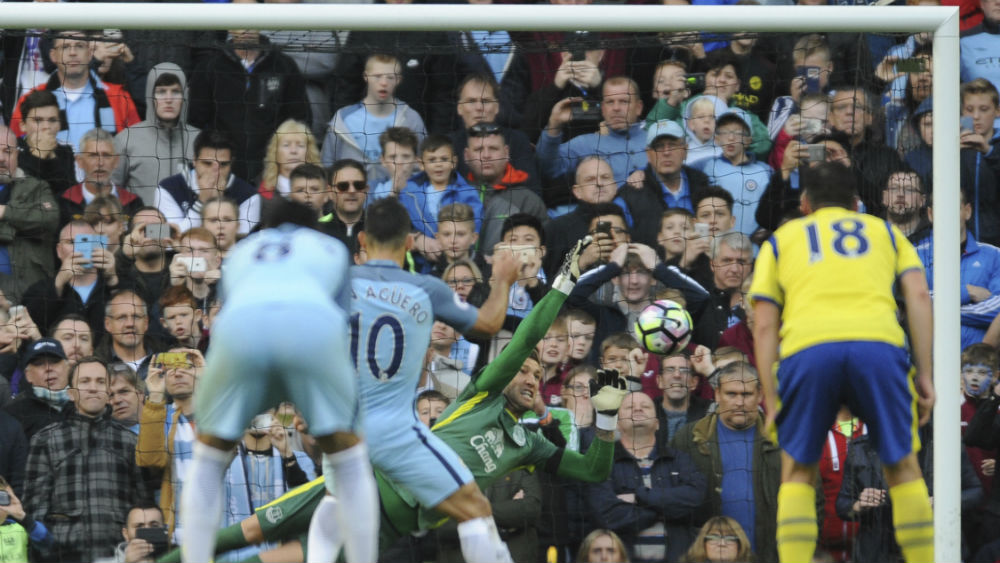 Já seria suficiente dizer que Stekelenburg defendeu dois pênaltis contra o líder do campeonato – ambos cometidos por Jagielka, em um dia proporcionalmente inverso ao do goleiro holandês. Parou os chutes de De Bruyne e Agüero. Mas ele também realizou outras defesas importantes, com destaque para uma linda intervenção em chute do argentino de dentro da área. Realizou um total de sete defesas para segurar o domínio do Manchester City.