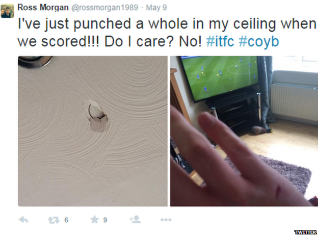 O Ipswich Town saiu perdendo para o Norwich, no primeiro jogo das semifinais dos playoffs da segunda divisão inglesa, mas Paul Anderson empatou o jogo, que mantém o clube vivo na briga por uma vaga na decisão, em Wembley, e para o acesso à Premier League. Um torcedor, em especial, ficou tão feliz que consegui a façanha de quebrar o teto do seu apartamento ao pular e socar o ar para comemorar.