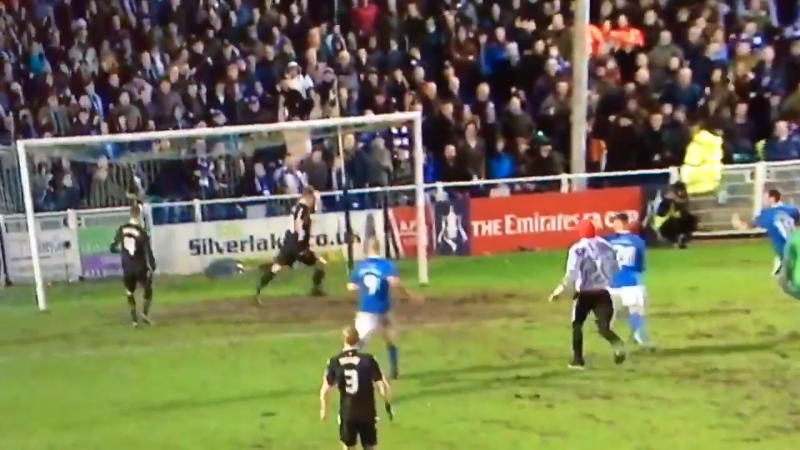 Look at the pitch invader at Eastleigh earlier…he nearly netted! (via @richrd31) pic.twitter.com/U6UeJg6hpX