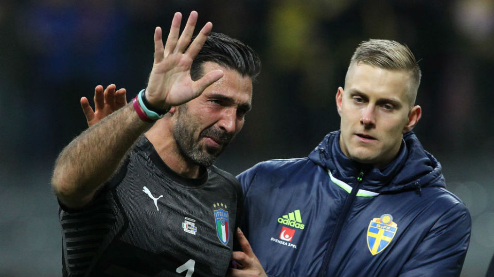 Ao apito final, enquanto diversos jogadores italianos choravam, Buffon ressaltou outra vez sua grandeza. Emocionado, porque nem ele resistia à dor, caminhava pelo gramado do San Siro. Cumprimentava os seus adversários suecos, parabenizando pela conquista da classificação à Copa do Mundo. Um feito que ele sabe bem da importância, e que muitos experimentarão pela primeira vez. Logo depois, saiu para abraçar os seus companheiros italianos. Aqueles que caíram por duas vezes consecutivas na fase de grupos, e agora carregarão a chaga que não se vivia no país desde 1958. O consolo era seu papel como líder. Seu papel como capitão. O papel como exemplo a todos. E como um dos grandes símbolos da história da Azzurra, eleito nos últimos dias como o maior jogador que já passou pela Nazionale.