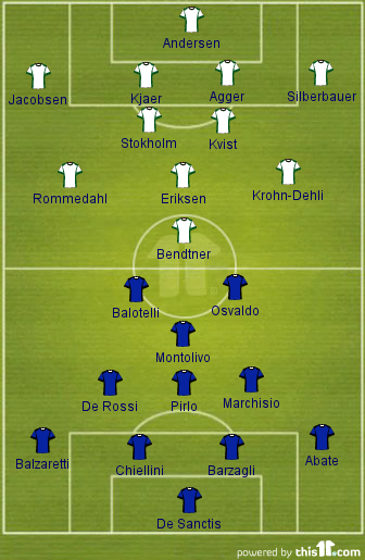 O lançamento de Pirlo para o gol de Balotelli decidiu o jogo, depois de ver a Dinamarca diminuir no fim do primeiro tempo e ver Osvaldo ser expulso no início da segunda etapa.