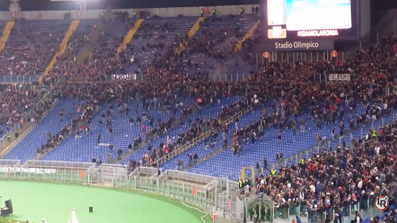 Pouco antes do intervalo, uma cena chamou a atenção para a curva sul do Estádio Olímpico. Os ultras começaram a deixar as arquibancadas, em uma cena que marcaria bastante o fracasso do time no jogo. Minutos depois os jogadores descobririam que se este fosse mesmo o caso, até que não seria tão ruim assim. Em vez de, de fato, deixarem a partida, os torcedores retornaram de uma vez só e começaram a direcionar vaias pesadas aos atletas, os chamando, entre outras coisas, de mercenários. Uma cena que, pelo seu ineditismo, gerará bastante repercussão na Itália, talvez justamente o que queria a torcida.