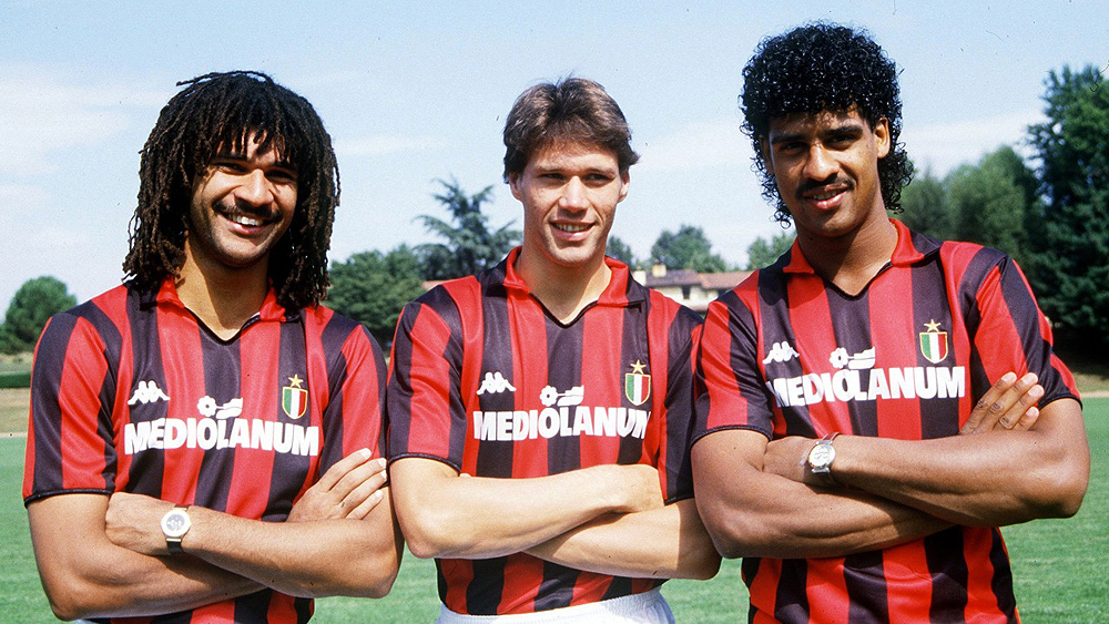Aquele Milan, ainda assim, poderia ficar mais forte. E ficou a partir da temporada 1988/89, quando a federação italiana permitiu a contratação de um terceiro jogador estrangeiro a cada agremiação da primeira divisão. Os rossoneri um dia agradeceram muito ao futebol sueco, por oferecer o trio Gre-No-Li à potência dos anos 1950. Quase quatro décadas depois, seria a vez de confiar ainda mais no Futebol Total da Holanda. O terceiro elemento laranja atuaria atrás, mas com o mesmo dinamismo de Gullit e Van Basten. Franklin Edmundo Rijkaard era seu nome.