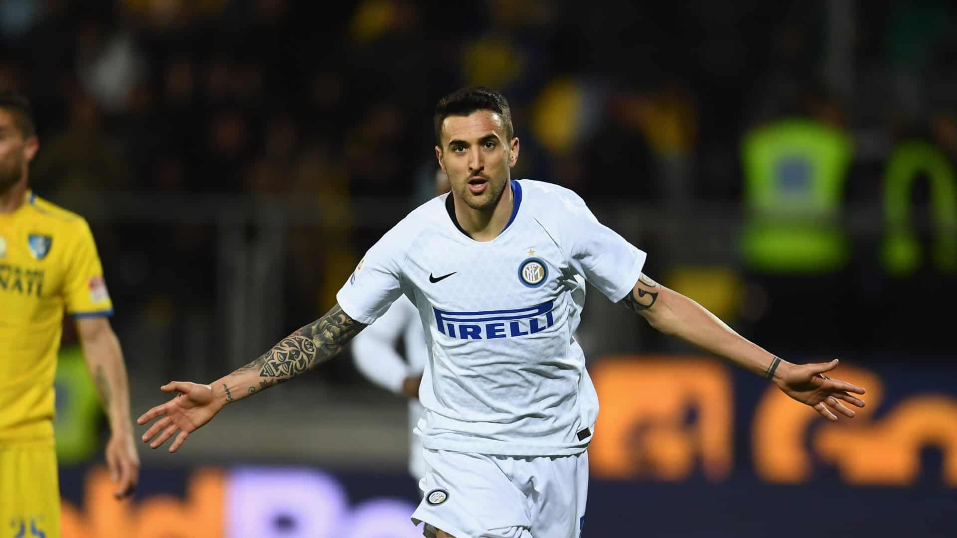 Oito toques na bola, e a Internazionale atravessou o gramado, nos acréscimos do segundo tempo, para garantir a vitória por 3 a 1 sobre o Frosinone, com Vecino fechando o placar por 3 a 1, neste domingo, pelo Campeonato Italiano. É a terceira vitória em cinco rodadas para o terceiro colocado da Serie A, com cinco pontos de vantagem para o perseguidor mais próximo, atualmente o Milan.