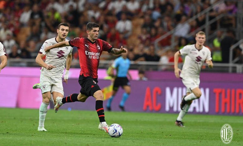 O Milan começou o primeiro tempo pressionando o Torino. Theo Hernández, assistido por Rafael Leão, e Olivier GIroud não conseguiram converter as primeiras oportunidades. A dupla de reforços vinda do Chelsea resolveu então entrar em ação para tirar o zero do placar. Loftus Cheek foi acionado em bom contra-ataque e rolou para Christian Pulisic finalizar sozinho na área com o pé esquerdo. É o segundo gol do norte-americano em dois jogos na temporada.