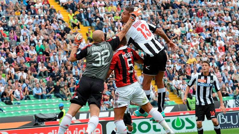A vantagem, porém, durou pouco. Aos 21 minutos, Ranégie foi derrubado na área e o juiz marcou pênalti. No lance, o zagueiro Christian Zapata ainda acabou expulso, deixando o Milan com um jogador a menor. Antonio Di Natale cobrou e marcou 2 a 1.