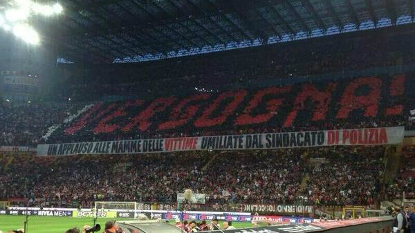 Antes do Derby della Madonnina deste domingo, a torcida do Milan levantou em suas arquibancadas no San Siro um mosaico que mostrava a palavra “vergonha”, acompanhada, embaixo, da seguinte mensagem: “Um aplauso para as mães das vítimas humilhadas pela polícia”. A frase era sobre um caso nada relacionado ao futebol, mas que ajuda a evidenciar a tensão entre ultras e autoridades italianas.