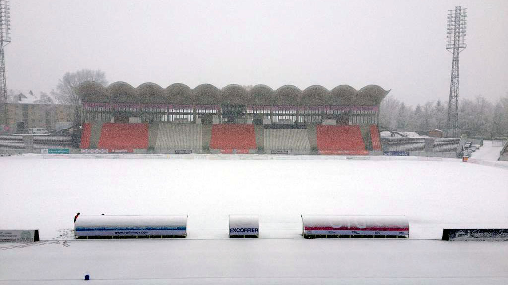 Na França, o problema foi a neve. O jogo entre Evian e Lorient aconteceria no estádio Parc des Sports, em Annency. Mas as fotos mostraram que o estádio estava coberto de neve e não haveria condições de jogo. Uma nova data será estabelecida pela liga francesa. Veja: