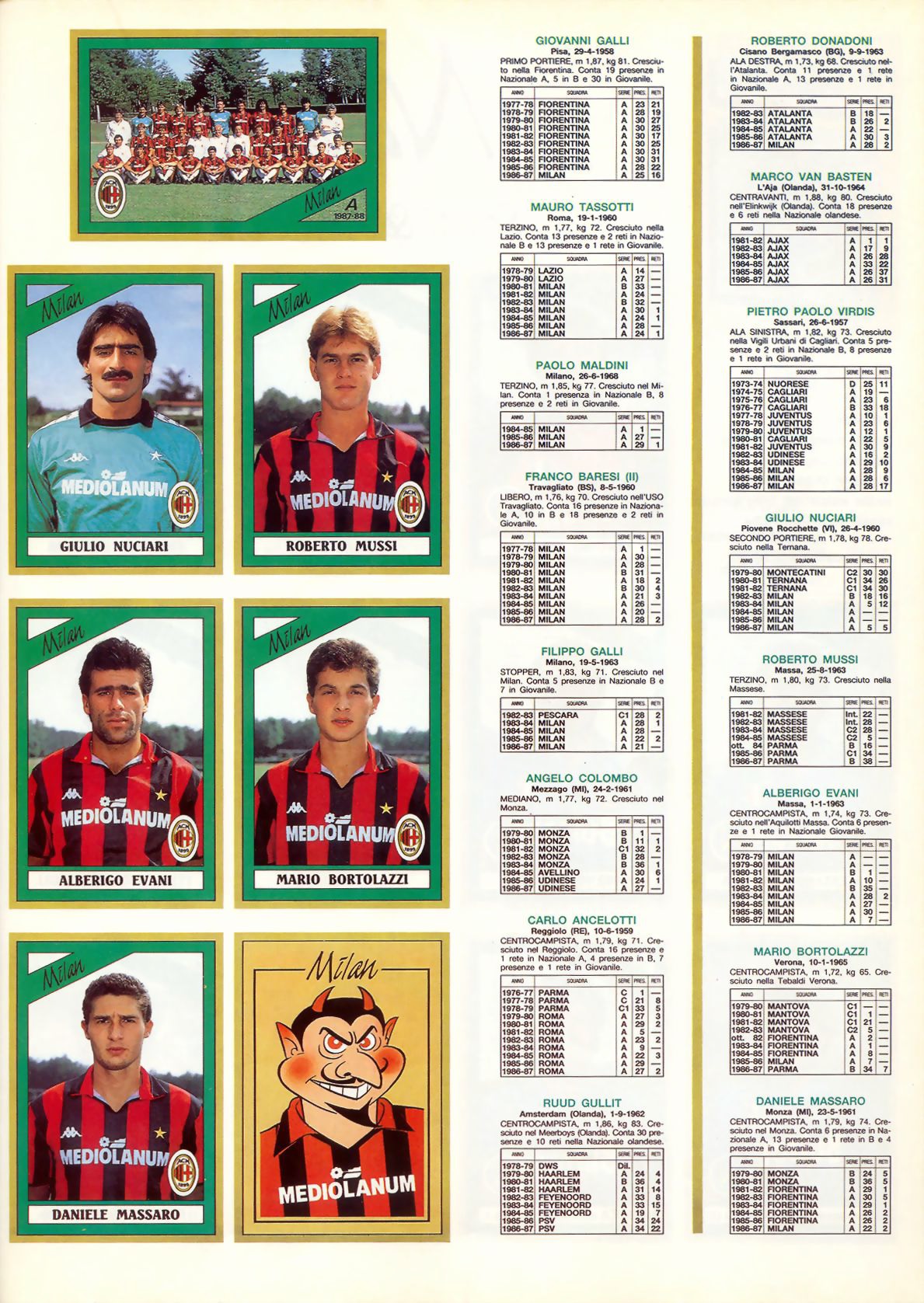 Estes jogadores se juntam aos ótimos valores italianos que já se encontravam no clube. Além dos já citados Giovanni Galli, Roberto Donadoni e Daniele Massaro e do capitão Franco Baresi, há ainda a regularidade do lateral-direito Mauro Tassotti, o estilo sóbrio do zagueiro Filippo Galli, a versatilidade do meia Alberigo Evani, o faro de gol do atacante Pietro Paolo Virdis (artilheiro da Serie A na temporada 1986/87, com 17 gols) e ainda a juventude de um lateral-esquerdo que estreara em janeiro de 1985 e se firmara como dono da posição já a partir da temporada seguinte: um garoto de 19 anos chamado Paolo Maldini.