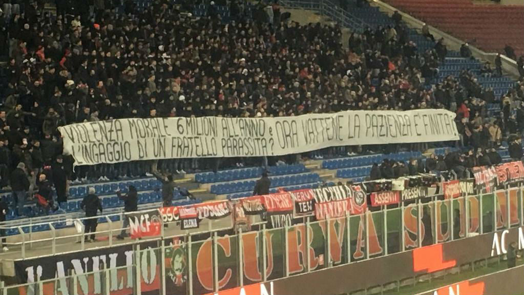 Mas, diante das novas especulações da imprensa, menos seis meses depois, de que Donnarumma estaria novamente forçando sua saída do clube, alguns ultras decidiram dizer chega. “Violência moral, € 6 milhões por ano e a contratação de um irmão parasita? Vá embora, nossa paciência terminou”, dizia a faixa. O “irmão parasita” seria Antonio Donnarumma, goleiro reserva que teria sido contratado pelo Milan como uma das exigências de Gianluigi.
