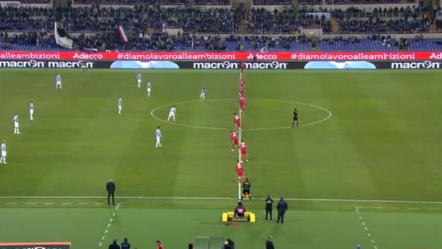 A cena acima é do pontapé inicial. Sim, a Samp tentou dar uma de futebol total e assustar a Lazio com o time inteiro sobre a linha do meio-campo – algo já visto algumas vezes na Itália recentemente, nas loucuras dos ultraofensivos times de Zdenek Zeman. Desta vez, lance não deu muito certo, com os romanos conseguindo se segurar e mandar o perigo pela longe. Mesmo assim, vale pela surpresa: