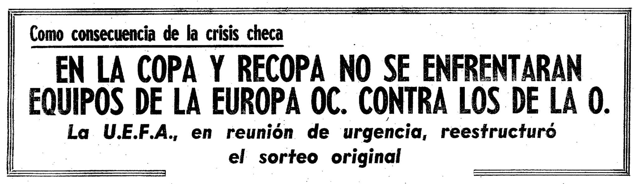 Uma semana depois, a Uefa convocou reunião de seu Comitê de Urgência em Zurique para tratar de suas copas de clubes diante dos últimos acontecimentos em Praga. Segundo nota publicada no jornal catalão Mundo Deportivo, a entidade deveria avaliar a posição do Celtic, que enfrentaria o Ferencváros pela Copa dos Campeões e se opunha à disputa de jogos contra equipes dos países que haviam participado da invasão da Tchecoslováquia.