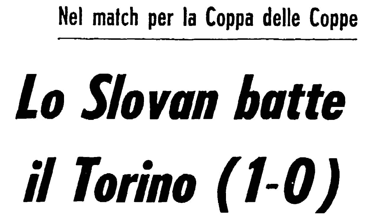 O bom time do Toro contava com o meia franco-argentino Nestor Combin, além de vários nomes da Azzurra, como o próprio Lido Vieri, o lateral Fabrizio Poletti, o volante Giorgio Puja e o meia e capitão Giorgio Ferrini. Mas acabou superado também na partida de volta, em Bratislava, no dia 5 de março, mesmo com o Slovan tendo de atuar por quase uma hora com um jogador a menos devido à expulsão de Hrdlička por jogo brusco aos 35 minutos da etapa inicial.