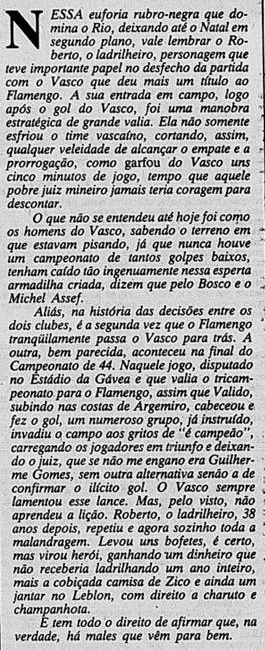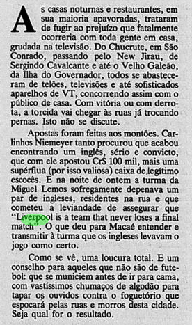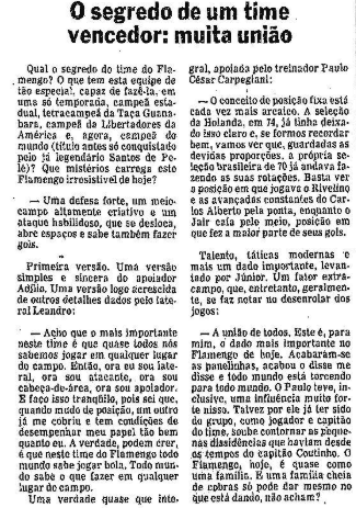 Para ampliar a visualização dos recortes, você pode clicar com o botão direito do mouse e selecionar ‘abrir as imagens em nova guia’. Além deste especial, publicaremos outros dois nas próximas horas: um abordando as declarações de Paisley e dos personagens do Liverpool sobre o Mundial; e outro com os relatos da imprensa estrangeira sobre a vitória rubro-negra. Aproveite a viagem: