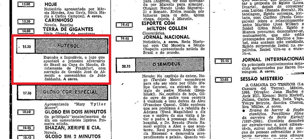 Nos anos 70, por exemplo, mesmo o futebol nacional era mostrado com parcimônia, na maioria das vezes em videotapes no começo da madrugada, horas depois de realizadas as partidas, ou mesmo nas manhãs seguintes. O que vinha de fora então era mais raro ainda de ser exibido, mas nem sempre por empecilhos técnicos. Alguns casos são anedóticos.