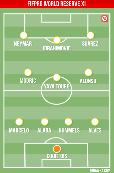 O que a FIFPro não anunciou durante o evento em Zurique, mas divulgou nas redes sociais, foram os reservas do time do ano. Assim como Sergio Ramos de volta à lateral, há algumas invencionices, a exemplo de David Alaba no miolo de zaga. Mesmo assim, é uma equipe que, no geral, parece bem mais aceitável do que a titular – até por não ter os três nomes contestados citados acima. Por mais que Daniel Alves não seja dos nomes mais defensáveis, é até mais defensável que David Luiz, por exemplo.