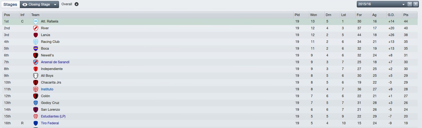 No torneio Clausura terminamos assim: