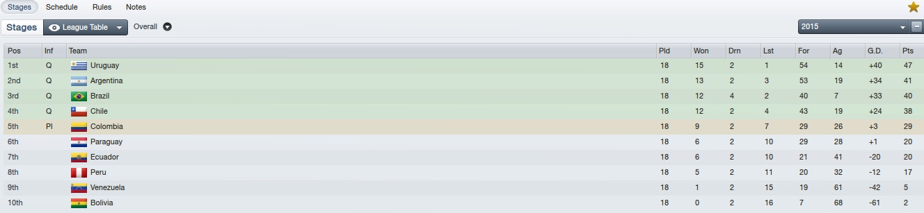 Contra a Bolívia demorou um pouco mais para vencer a retranca. Parecia um daqueles jogos do FM… Uma cobrança de escanteio, porém, nos safou! Labrín de cabeça abriu o placar. Na sequência Vargas fez o segundo, Matías Fernández o terceiro e Paulo Magalhães o quarto. Adivinhem? No final a Bolívia descontou. Sem problemas… Estávamos classificados para a Copa do Mundo!