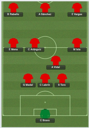 Na rodada seguinte os peruanos nos visitaram. Nossa alienación foi Bravo; Toro, Labrín e Medel; Isla, Vidal e Mena; Mathias Fernández; Vargas, Sánchez e Rabello e vencemos sem dificuldade: 3 a 1. Vargas abriu o placar, o atacante Diego Rubio ampliou e no fim Sánchez fez o terceiro e eles o primeiro.